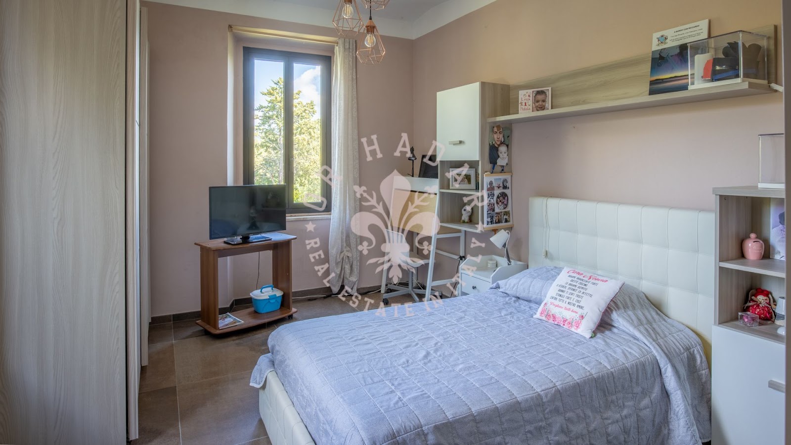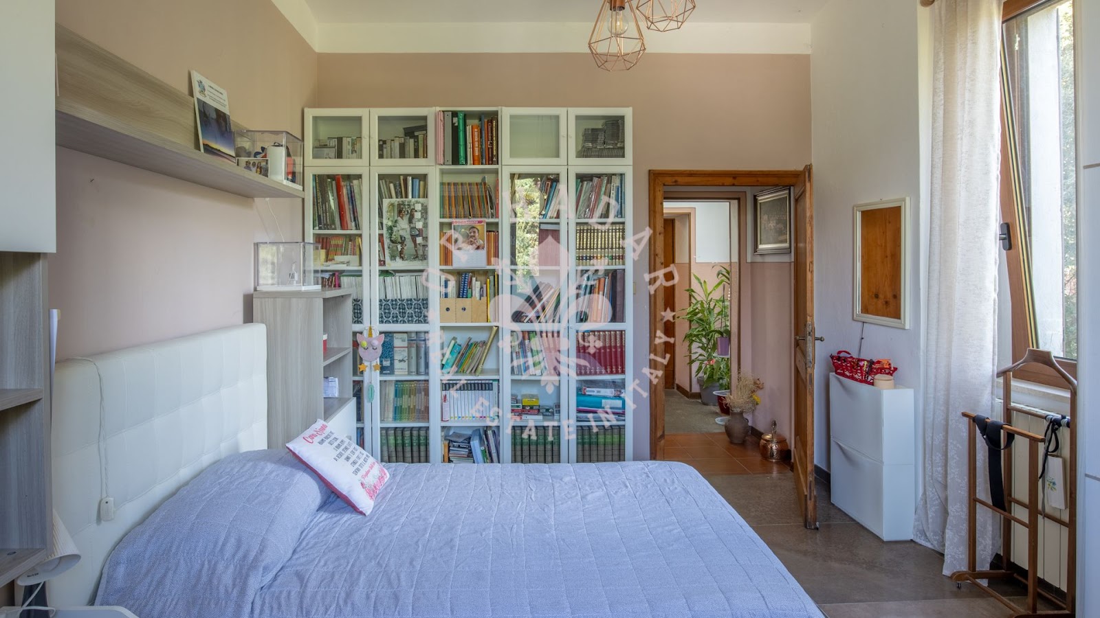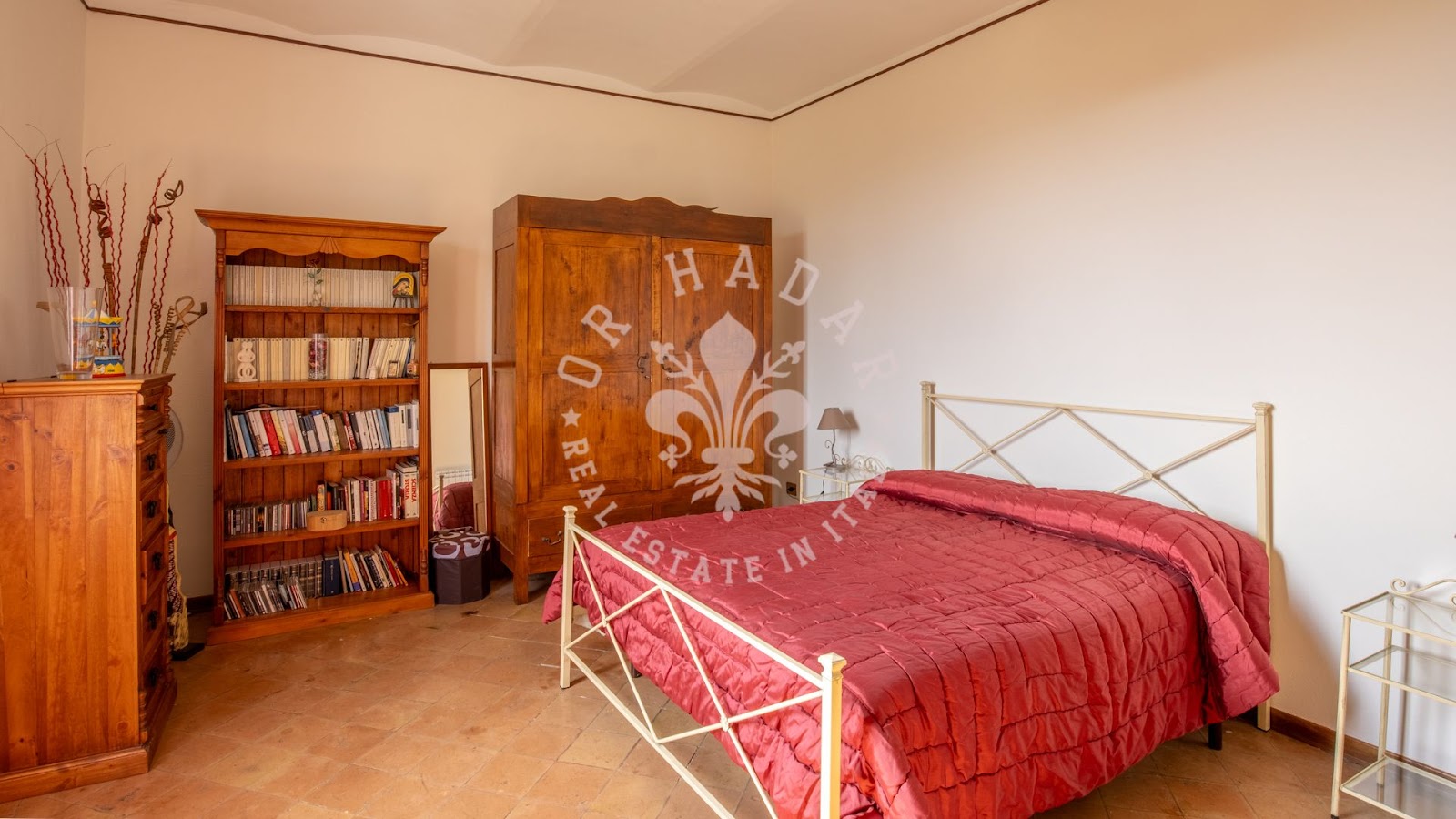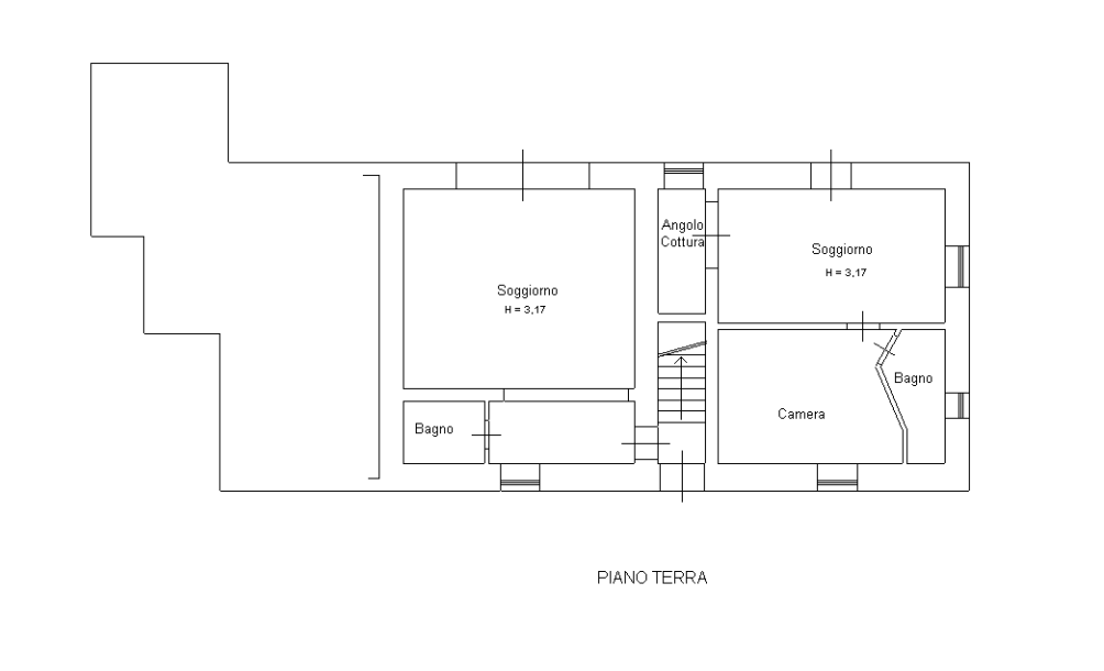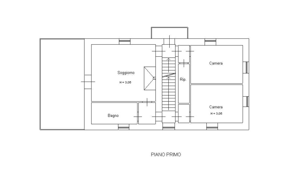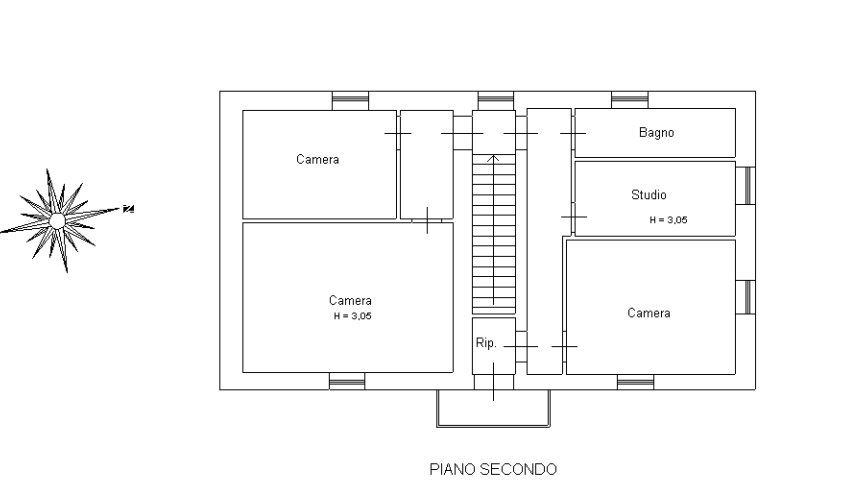 המבנה בנוי על פני שלוש רמות נפרדות, כאשר הכניסה הראשית בקומת הקרקע; חללי הפנים מאורגנים כדלקמן: בקומת הקרקע, ישנם 2 חדרי מגורים עם מטבחים, חדר שינה זוגי אחד ו-2 חדרי אמבטיה; בקומה הראשונה, סלון גדול עם מטבח ומרפסת פנורמית, חדר אמבטיה, 2 חדרי שינה זוגיים ומחסן; בקומה השנייה והעליונה, ישנם 2 חדרי שינה זוגיים, חדר שינה יחיד אחד, משרד וחדר אמבטיה. מקומה זו, מרפסת קטנה מציעה נוף של אגם טרסימנו (Trasimeno) וכל שלושת האיים שלו.
