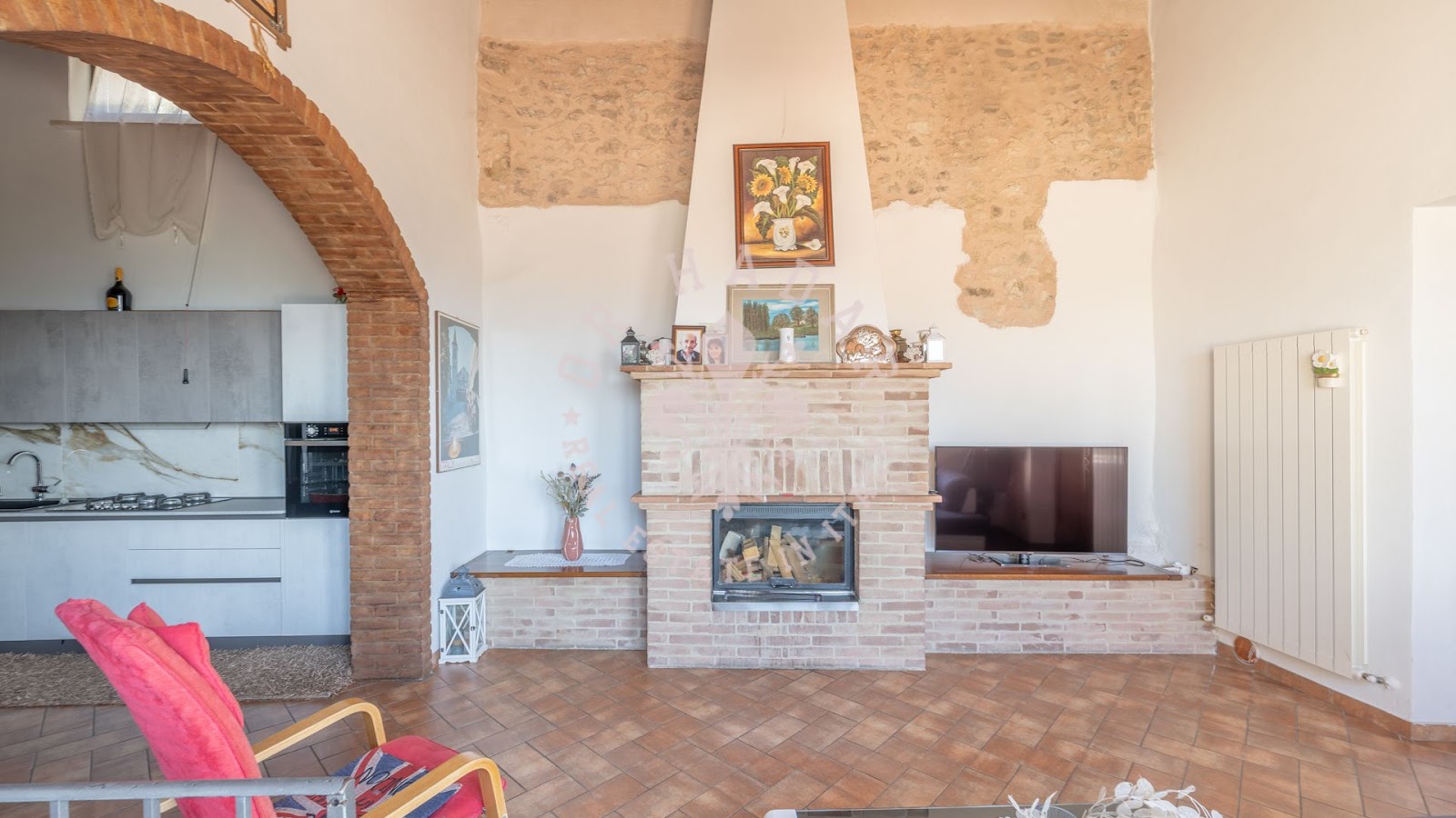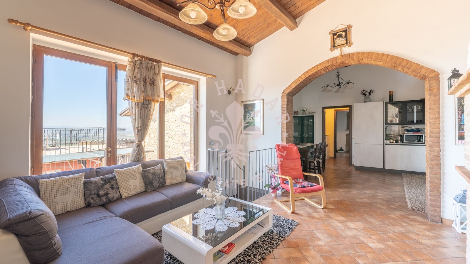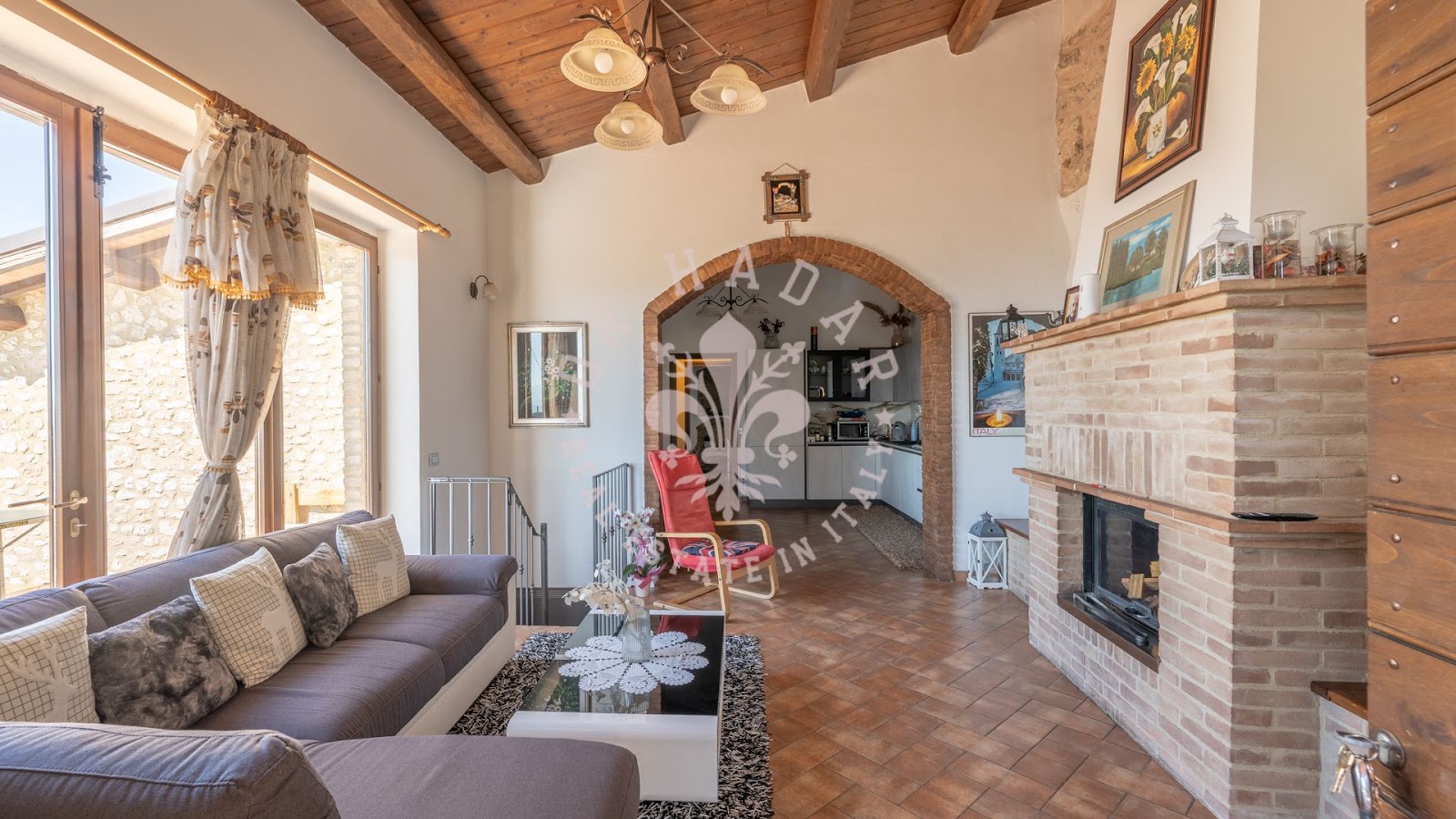 בית החווה המקסים הזה תוכנן להציע שטחי מגורים מרווחים ומחולקים היטב, אידיאלי למשפחות גדולות או לאלו המחפשים סביבה שלווה מבלי להתפשר על עיצוב ופונקציונליות. בקומת הקרקע, אזור המגורים כולל טרקלין כפול ומואר המואר על ידי חלונות גדולים המשקיפים על הגינה. המטבח הפתוח מודרני, מאובזר במלואו ומתוכנן בקפידה כדי להיות לב חיי החברה של הבית.