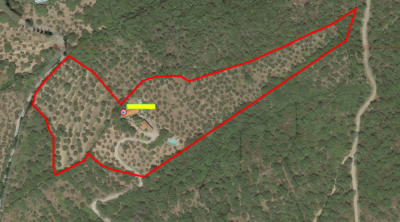 מחוץ לנכס יש כ-1.6 דונם של קרקע, המשמשת בעיקר כמטעי זיתים, יש כ-500 עצים. בריכת שחייה עילית בגודל 8×4 מאפשרת גם לשחות עם נוף מרהיב, אולי בשקיעה.