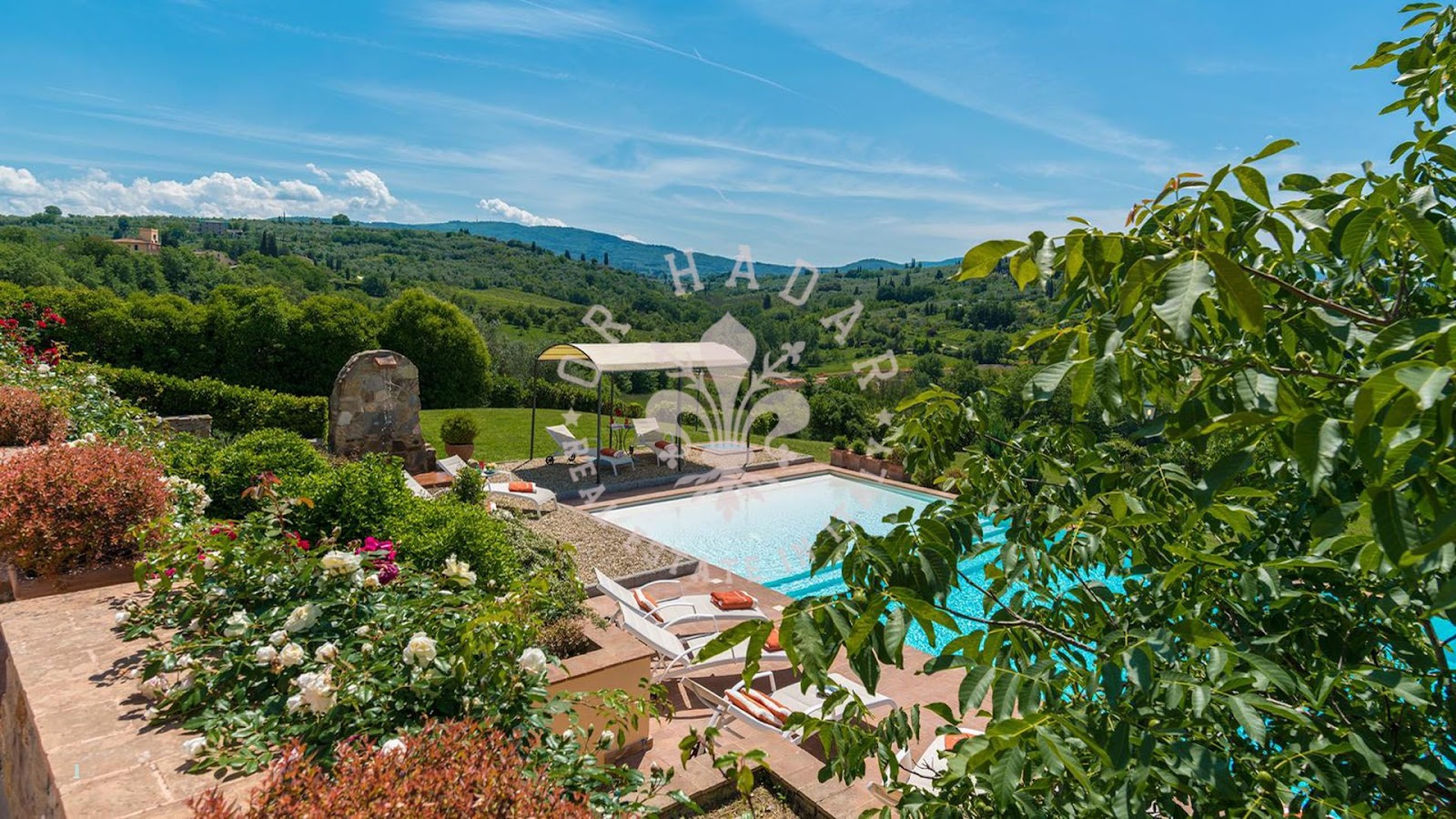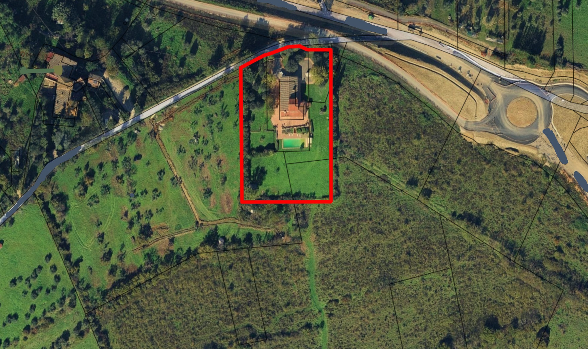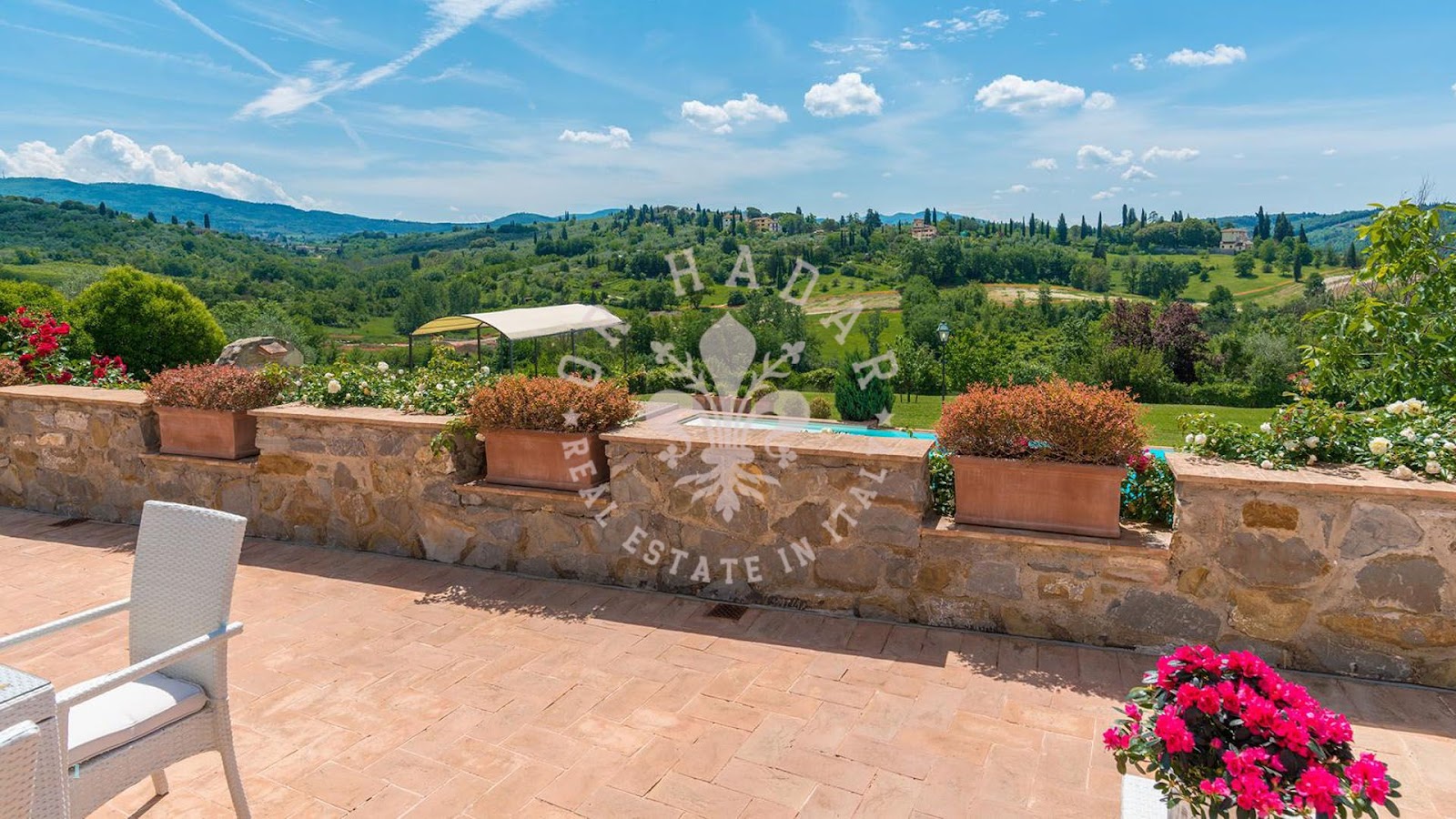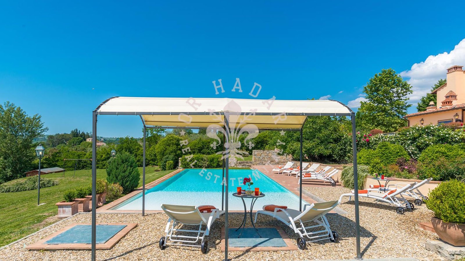 בחוץ יש לוג'יה מקורה גדולה המצוידת בתנור עצים ואזור מטבח חיצוני. שטחי החוץ המרוצפים מאפשרים יצירת מרפסת עם שולחנות אוכל ואזור טרקלין המשקיף על בריכת השחייה הפנורמית בגודל 15×5 ועל גבעות טוסקנה (Tuscany). הוילה ממוקמת בתוך גינה פרטית בשטח של כ-5,000 מ"ר, המבטיחה פרטיות וסביבה טבעית מקסימה.