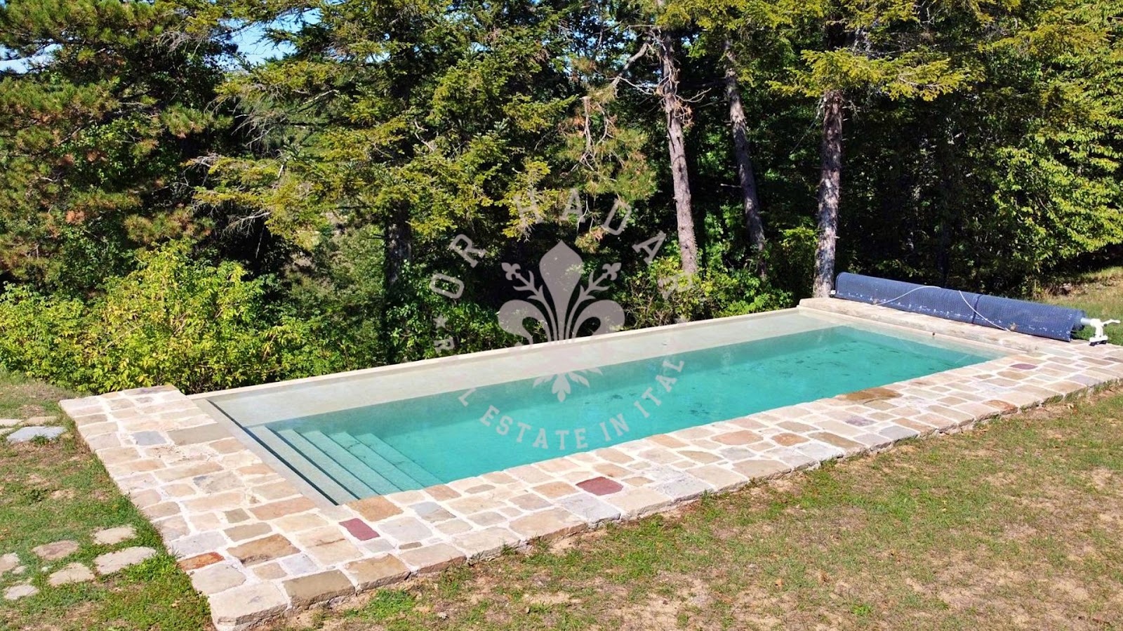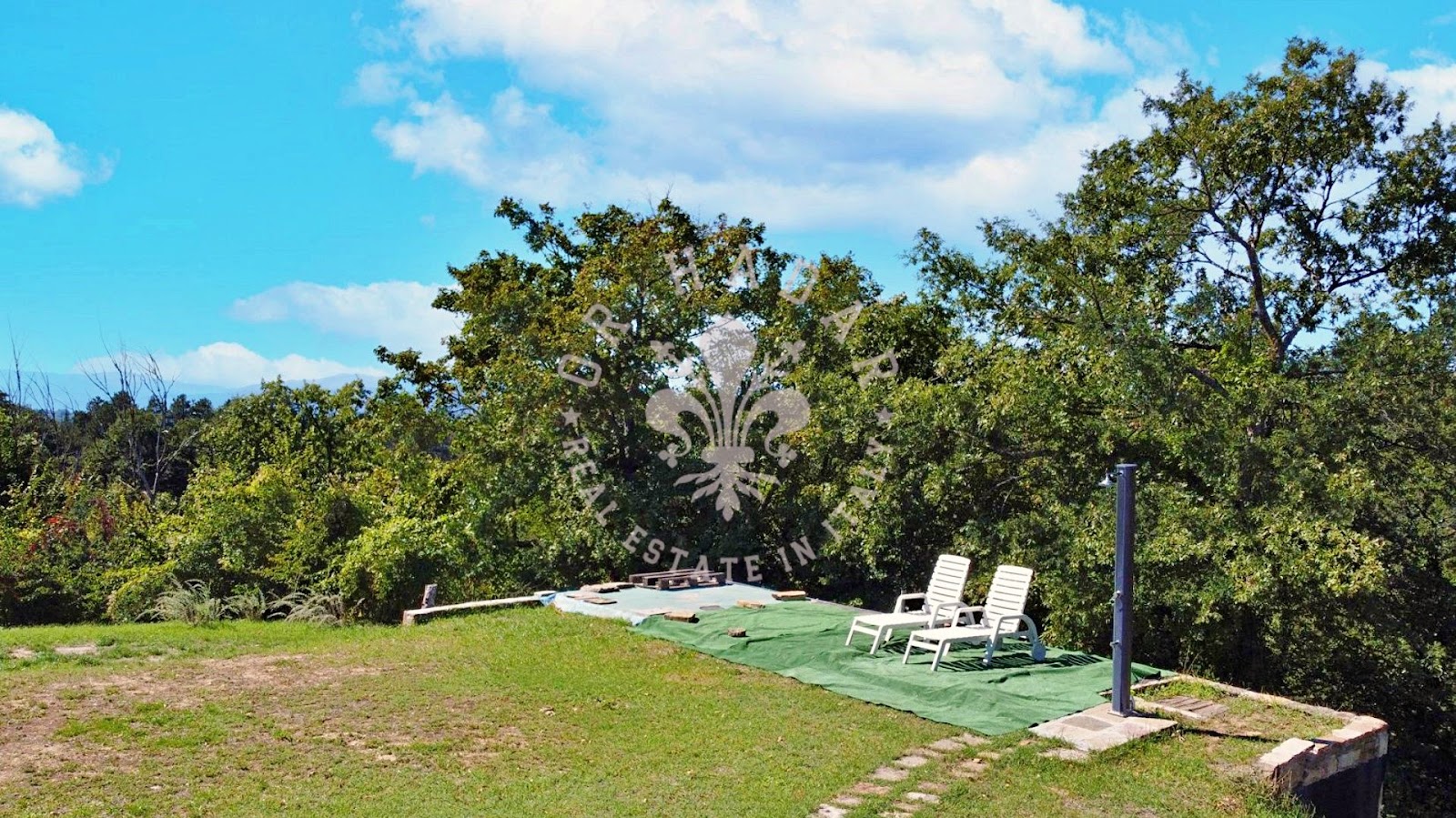 הגינה הסובבת, מגודרת במלואה ונגישה דרך שני שערים (אחד מהם חשמלי), משתרעת על 3000 מ"ר וכוללת בריכת אינסוף קסומה. יתרת הקרקע מורכבת מ-7000 מ"ר של יער.