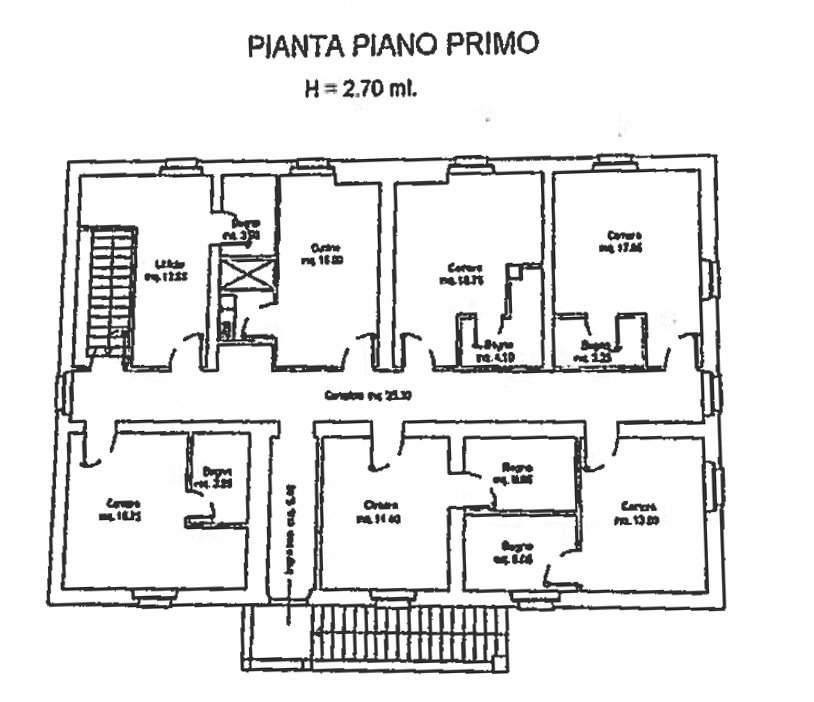 בקומה התחתונה, בנוסף לכניסה ומרפסת, יש מטבח, פחם המשמש לאחסון, חדר אמבטיה, חדר טריפלקס גדול, חדר שינה עם חדר אמבטיה צמוד, משרד וחדר שירות. מדרגות פנימיות, כמו גם מדרגות חיצוניות נוספות, מובילות לקומה העליונה, שם מתפתחת אזור השינה, המורכב משישה חדרי שינה, כולם מצוידים בחדרי אמבטיה פרטיים, ומשרד.