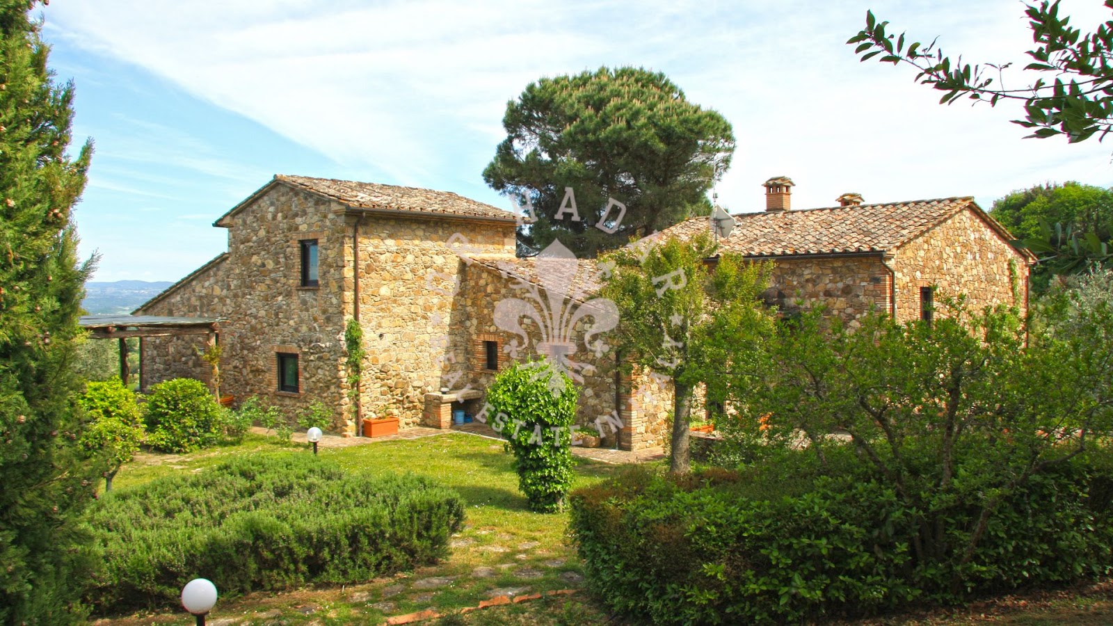 בית החווה פוג'יו דלי אוליבי ממוקם בתוך גינה פרטית בשטח של כ-6,800 מ"ר, מעוצבת בצורה מומחית עם פרגולות ורדים, ערוגות לבנדר גיאומטריות, גדרות חיות מטופחות ועשבי תיבול ארומטיים הממסגרים את בריכת השחייה, משולבים בצורה מושלמת בנוף. מיקומו המוגבה מציע נופים רחבים ומרחיקי ראייה על גבעות טוסקנה המתגלגלות, בעוד תאורת החוץ משפרת את כל הנכס בשעות הערב, ומגבירה את הקסם והפרטיות שלו. הבית משתרע על שטח של כ-410 מ"ר על פני ארבע קומות, ומציג ארכיטקטורה מפרקת היוצרת תנועה ורציפות בין החללים הפנימיים והחיצוניים. בקומת הקרקע, כניסה מרווחת מובילה לשני חדרי מגורים אלגנטיים, אחד מועשר באח מרשימה ועם גישה ישירה לפרגולה מקסימה. כמה מדרגות מובילות למטבח ופינת האוכל, גם הם כוללים אח תקופתי ופתיחה פנורמית גדולה הממסגרת את הנוף. מכאן יש גישה לחלל חיצוני מקורה נוסף, אידיאלי למפגשים חברתיים. באותה קומה יש חדר שינה זוגי ראשון עם חדר רחצה צמוד ובמיקום מבודד יותר, שני חדרי שינה נוספים, שניהם עם חדרי רחצה פרטיים. בקומה העליונה נמצא חדר השינה הרביעי עם חדר רחצה צמוד. מרתף הקומה מארח מוסך גדול, חדרי טכניים, אזור כביסה ומרתף יין אופייני. מרפסות ופרגולות משפרות את ההנאה מהגינה ומהנוף, ויוצרות דיאלוג מתמיד בין ארכיטקטורה לנוף. הנכס הושלם על ידי בריכת שחייה בגודל 15×7 מטר וכ-3.8 דונם של קרקע חקלאית המורכבת ממטעי זיתים ואדמה חקלאית. בית יוקרתי המשלב ייצוג, נוחות ואותנטיות בלב טוסקנה.