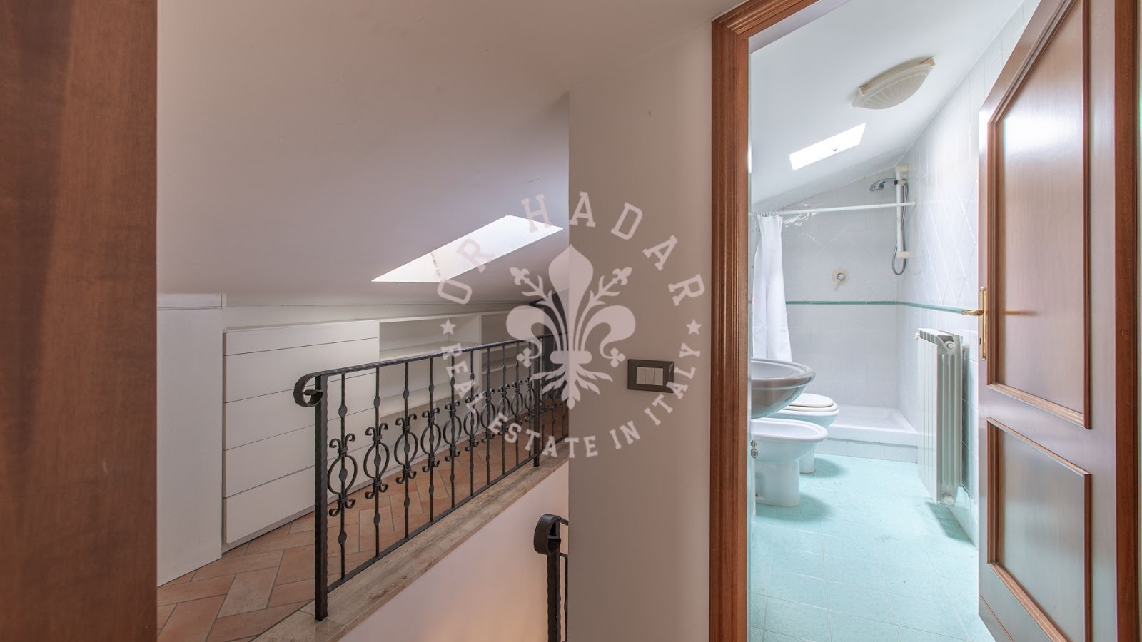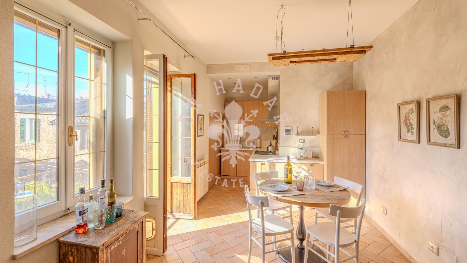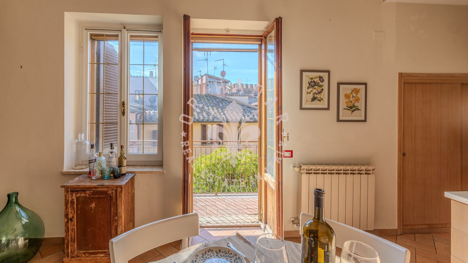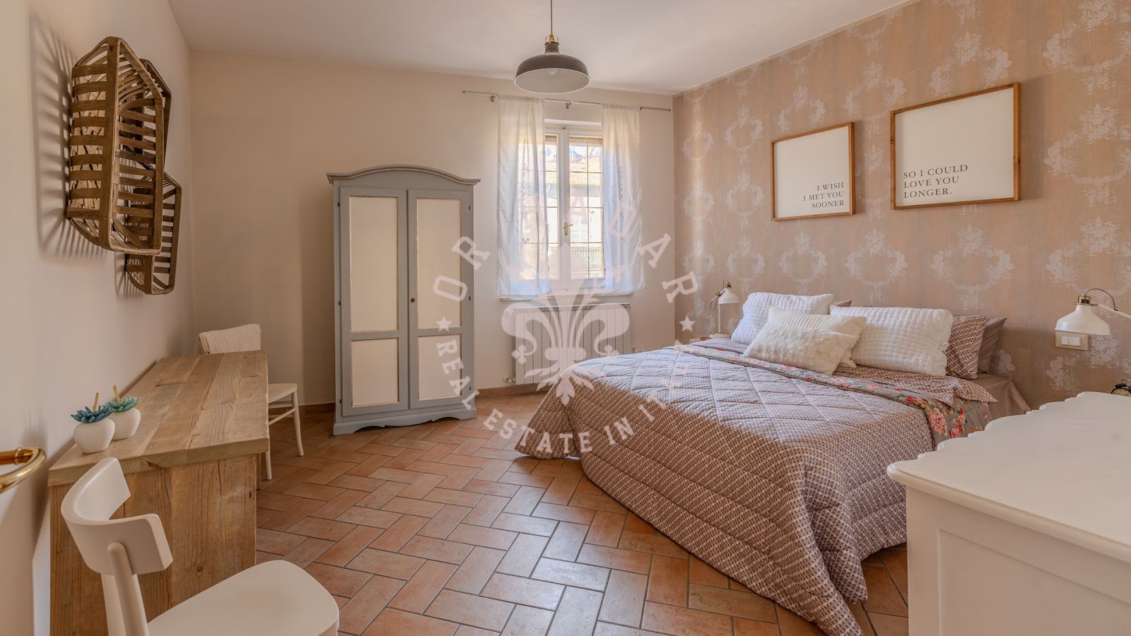 הדירה ממוקמת במרכז ההיסטורי של קיוזי (Chiusi) ונמצאת בקומה השנייה. השטח הכולל הוא כ-110 מ"ר ומסודר כדלקמן: אזור המגורים משתרע על כ-85 מ"ר ומורכב מחדר כניסה, סלון עם אח שיש סן קסקאנו (San Casciano) במטבח ופינת אוכל פתוחה, עם גישה למרפסת קטנה. יש חדר אמבטיה מרווח עם אמבטיה וכיור כפול, חדר שינה ראשי ומסדרון המשמש כמשרד. מכאן, מדרגות פנימיות מובילות לקומת עליית הגג העליונה, שם יש חדר רב-תכליתי וחדר אמבטיה עם מקלחת. באותה קומה, יש גם אזור אחסון בעליית הגג של כ-25 מ"ר. הנכס משלים במרתף של כ-7 מ"ר, אידיאלי לאחסון עצים לאח במהלך החורף או לשימוש כאחסון כללי. הנכס נמכר מרוהט במלואו.