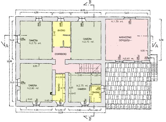 המבנה הראשי שוחזר במהלך שנות ה-90 ומכסה שטח של כ-400 מ"ר בשתי קומות: בקומה הקרקעית יש כניסה, סלון/פינת אוכל גדולה עם אח, מטבח עם מזווה, חדר אמבטיה ומערכת תרמית עם גישה מבחוץ; בקומה הראשונה ישנם ארבעה חדרי שינה ושלושה חדרי אמבטיה; באותו בניין, עם גישה עצמאית, בקומה הקרקעית יש מרתף בשטח של כ-70 מ"ר (שאותו ניתן להפוך בקלות ליחידת מגורים), בעוד שבקומה הראשונה יש חדר אחסון בשטח של כ-40 מ"ר.