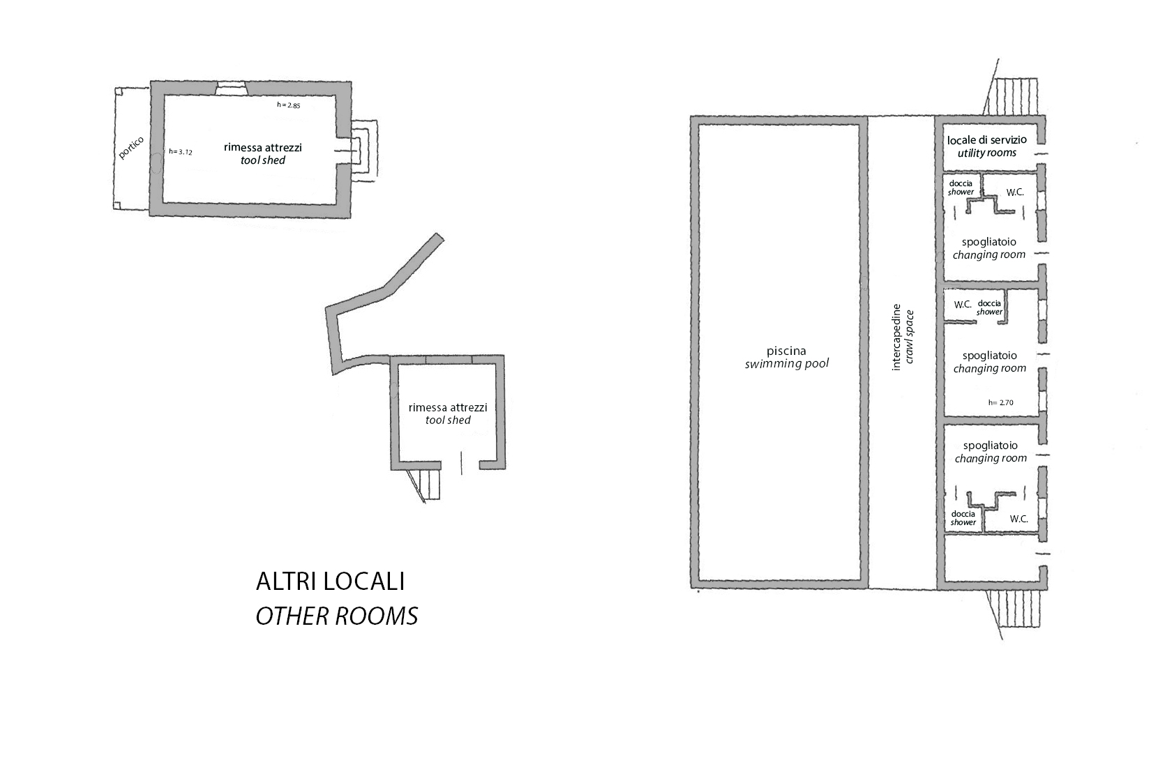 הנכס מוקף בגן פנורמי יפהפה בשטח של כ-9,400 מ"ר, בו יש בריכת שחייה גדולה בגודל 6×17 מטר עם חדרי הלבשה צמודים שעודם בתהליך שיפוץ וניתן להשתמש בהם גם למטרות אחרות.