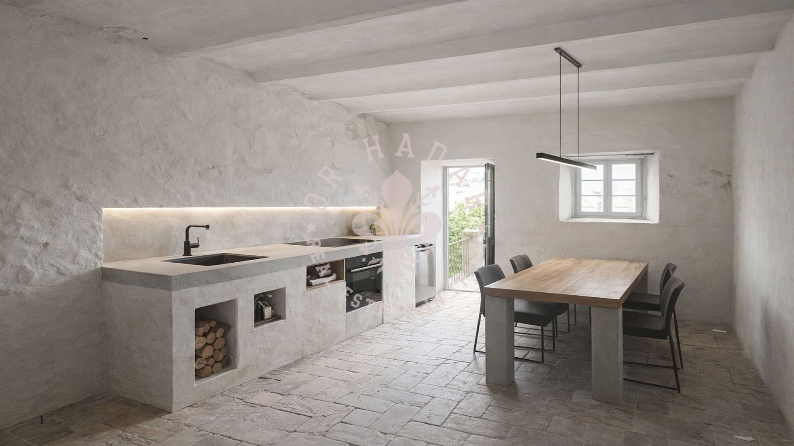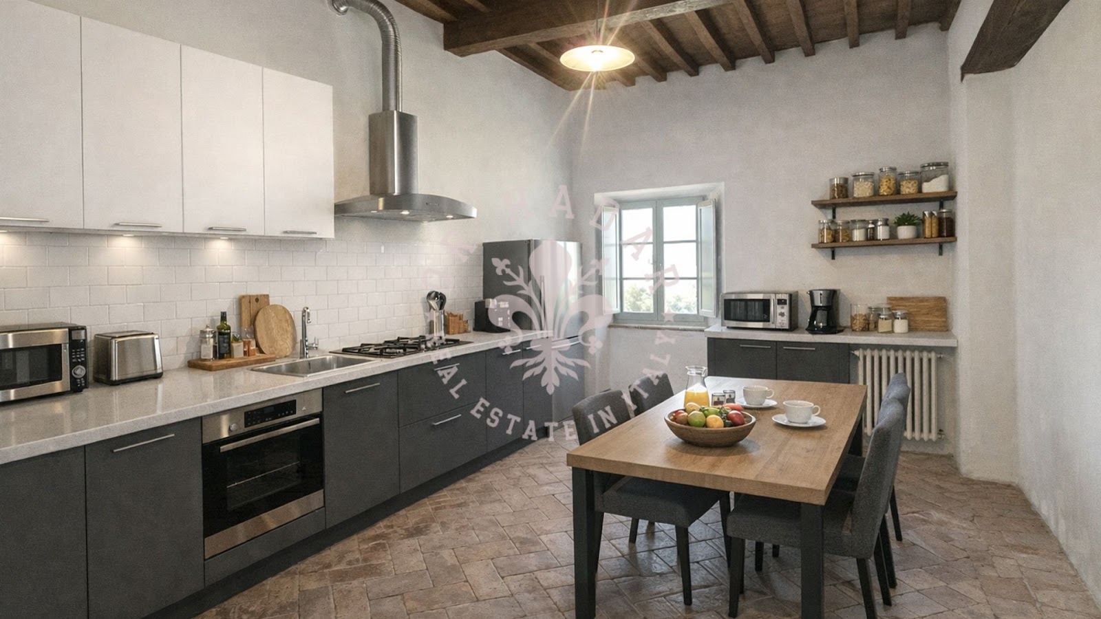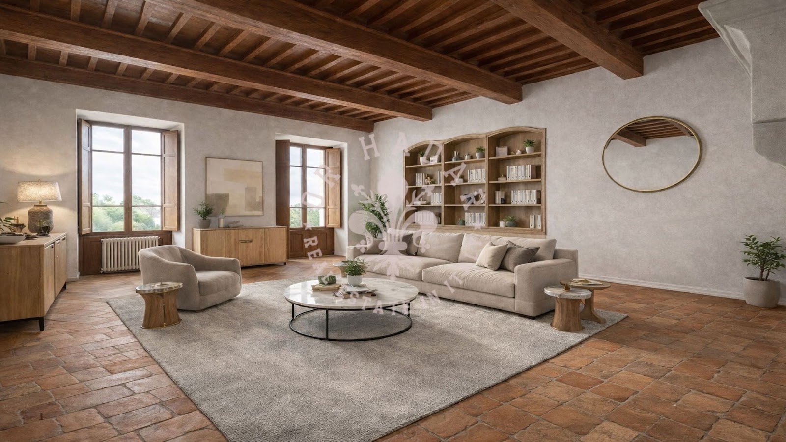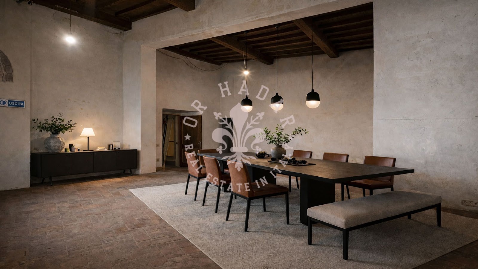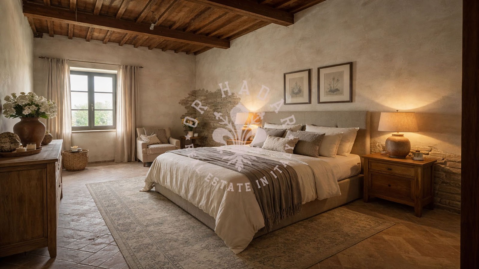 מעבר דרך הכניסה מהסמטה העתיקה מימי הביניים, מקבלים את פני האורחים באולם כניסה מרשים. המשך הדרך מוביל לחדר קבלה מואר הפונה למרפסת פנורמית המשקיפה על העמק והמנזר. הקומה הושלמת על ידי שני חדרים נוספים וחדר אמבטיה, שטחים אידיאליים לאטלירים או סטודיואים פרטיים.