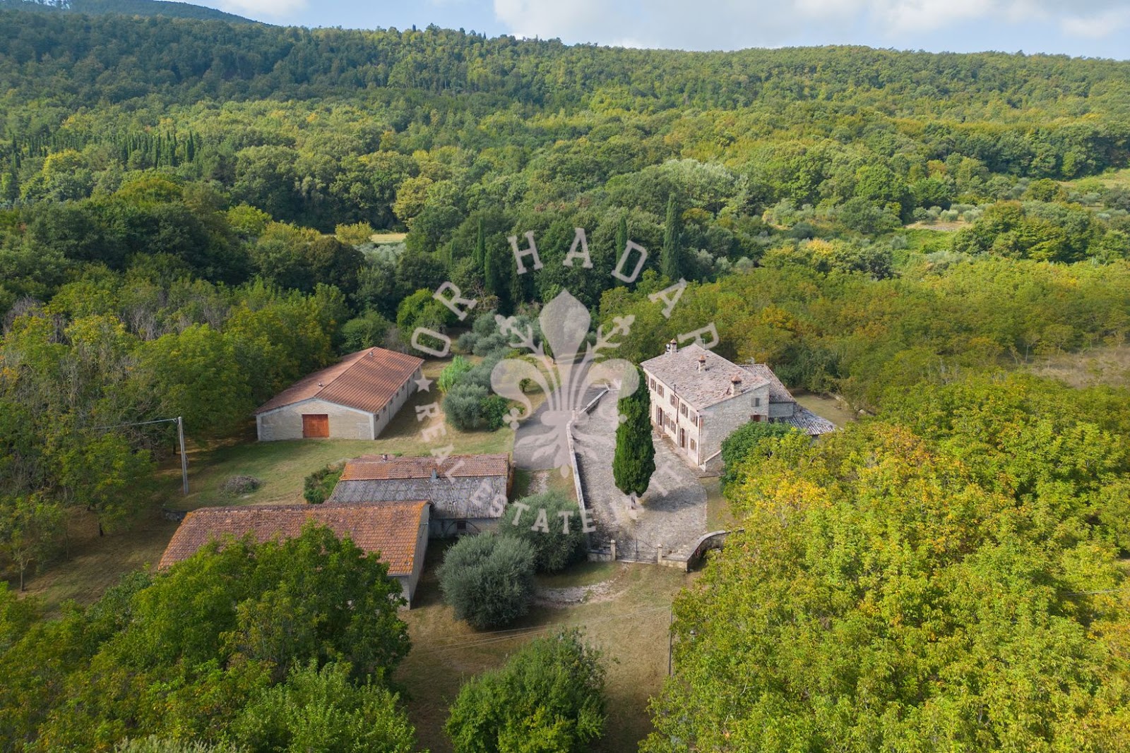 פודרה בקאצ'יאנו (Podere Baccaciano), מוגן מעיניים סקרניות על ידי הצמחייה של 19 הדונמים שלו, ממוקם באופן אסטרטגי במרחק של 2 ק"מ בלבד ממרכז ההיסטורי של סרטאנו (Sarteano), נגיש תוך שתי דקות ברכב, חמש דקות באופניים וכעשר דקות ברגל. משער הכניסה הראשי, שדרה של עצי זית יפים מובילה לבניין הראשי, העשוי כולו מאבן. החווה עברה שיפוץ גדול בתחילת שנות ה-2000, שהוביל לבניית שני דירות גדולות תואמות בפנים, עם אפשרות לחבר אותן יחד. הנכס שמר על רבים ממאפייניו המקוריים בזכות שיקום קפדני. בכניסה לבית, קורות העץ, הלבנים, האח והרצפות טרקוטה מציעים את האווירה החמימה של הסגנון הטוסקני (Tuscan). אזור המגורים המרווח מאופיין בקשת לבנים חשופה גדולה ובחלונות, ודלתות צרפתיות מאפשרות כניסת אור רבה, עם חשיפה דרומית. באותה קומה, בשתי הדירות אנו מוצאים מטבח מרווח, שאחד מהם כולל תנור עצים ומזווה, שניהם עם גישה ישירה לגינה, מסדרון המוביל לקומה העליונה ולמרפסת האחורית, שירות חדר אמבטיה מרווח עם הכנה למכונת כביסה ומייבש. המרפסת האחורית, אליה ניתן להגיע מאזורי המגורים של שתי הדירות, משקיפה על גינת דשא עם עצי פרי, שתמיד נדיבה מאוד בקציר שלה. בקומה הראשונה, יש לנו את אזור השינה, עם 3 חדרי שינה, אחד עם חדר אמבטיה צמוד, חדר אמבטיה וחדר עם אח, שיש בו גם הכנה לחיבורי מטבח. ניתן לגשת לאתגרים בהם ממוקמים חדרי הטכניים באמצעות מנגנון סולם נשלף קל. מהקומה הראשונה, דלת מאפשרת גם גישה ישירה מהמדרגות החיצוניות הטרוורטין. בזכות כניסות אלו, תיאורטית ניתן לחלק את כל החווה לארבע יחידות עצמאיות במטרה להפוך אותה לשימוש קולט מרובה כבתי נופש. הנכס כולל שני מחסנים חקלאיים שמישים בשטח מסחרי של 431 מ"ר ו-217 מ"ר, עם גגות מתוחזקים היטב ומרזבים ששופצו בשנת 2016, כמו גם מבנים נוספים בשטח של כ-180 מ"ר, שאחד מהם הוא חצי הרוס (כ-80 מ"ר).