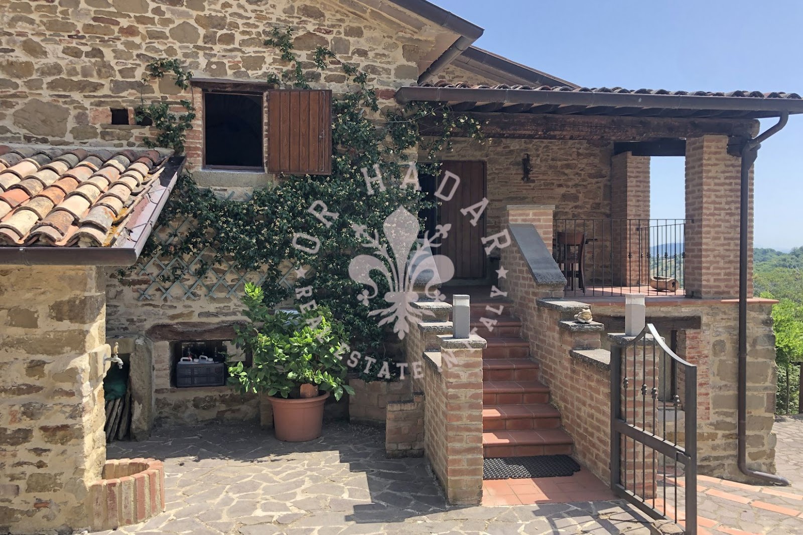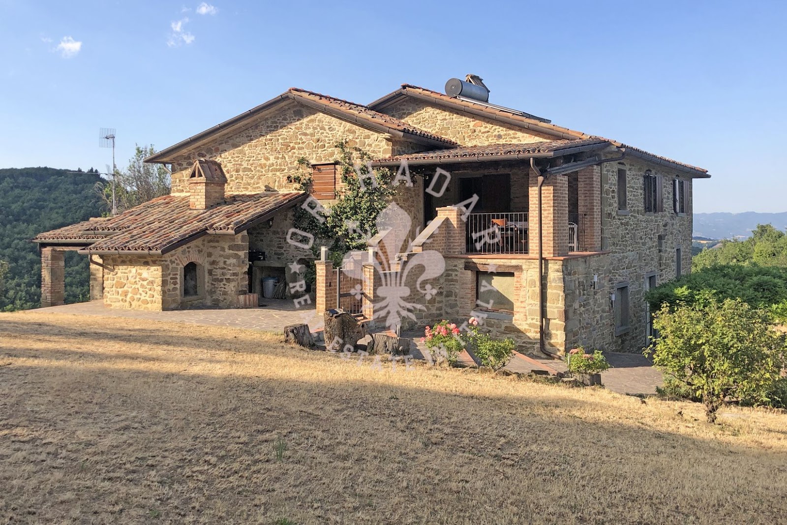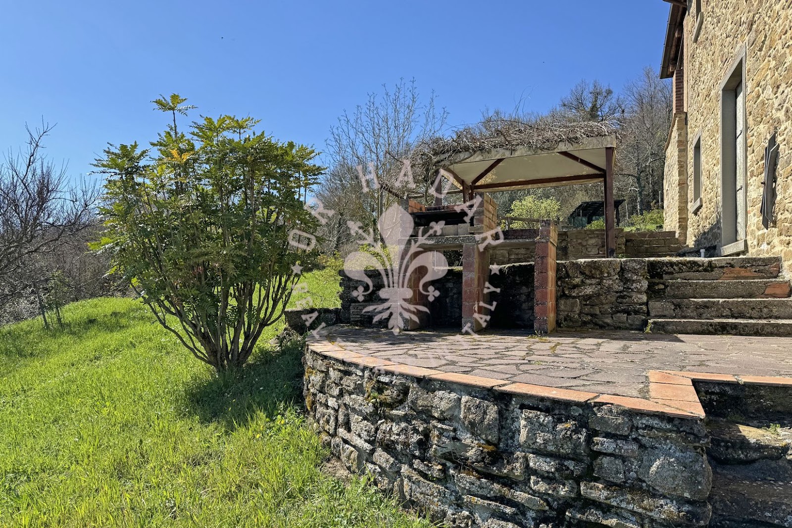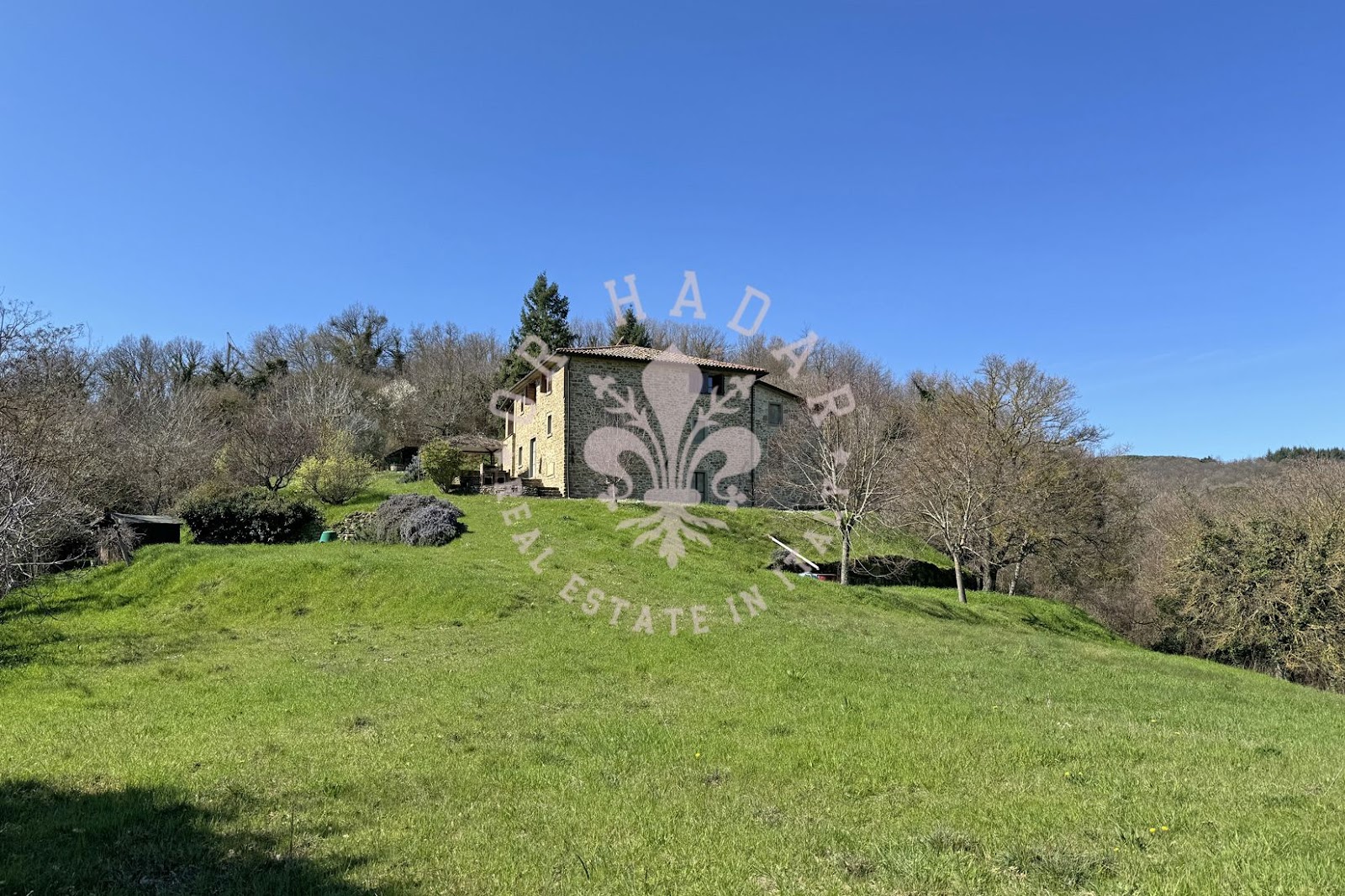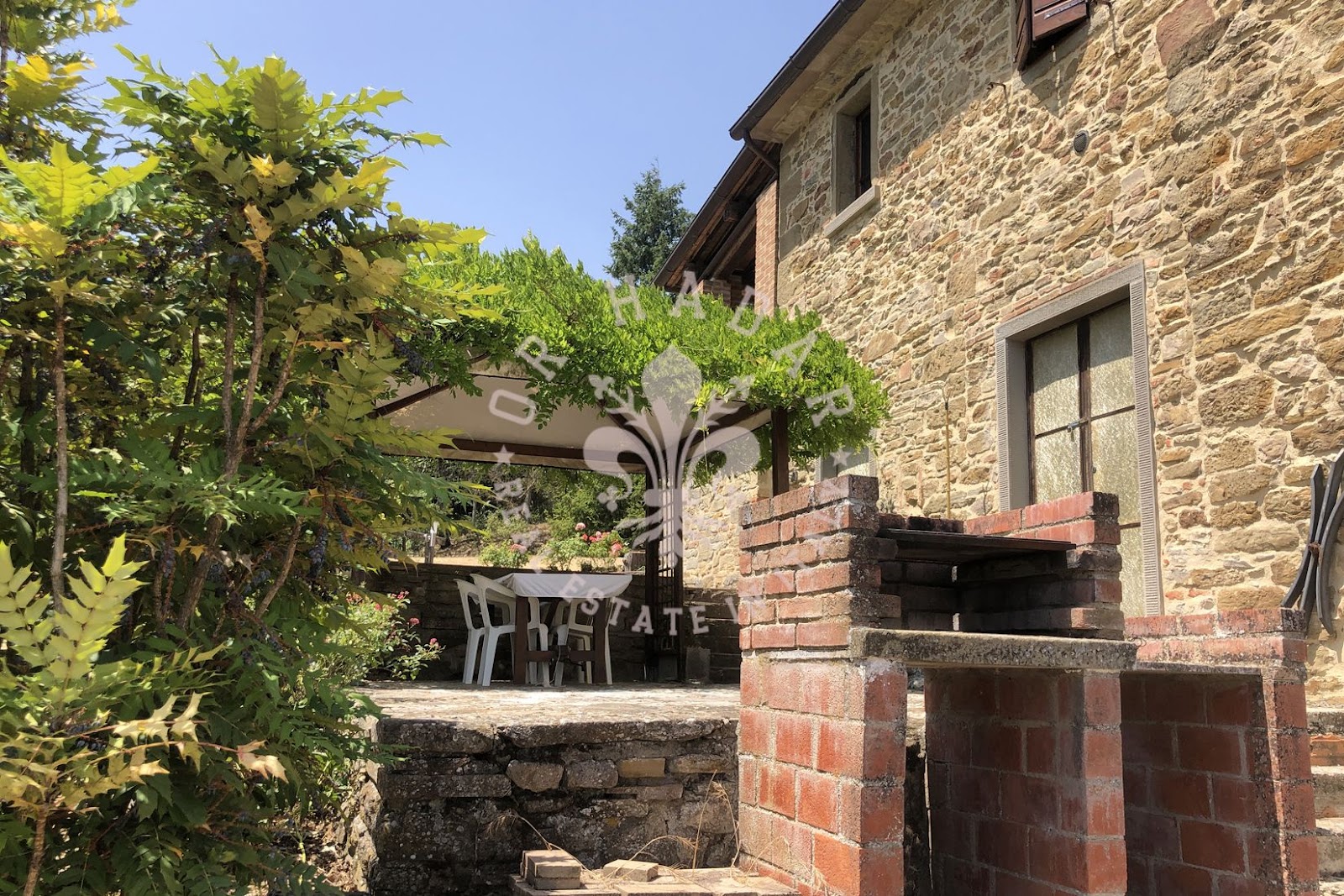 במיקום פנורמי יפהפה עם נוף של 360 מעלות ושמש רבה, אנו מוצאים את החווה האופיינית הזו, הבנויה כולה מאבן. החווה מסודרת בשלוש קומות, בצד אחד בצד המזרחי, שם השמש זורחת, ובשני צדדים בצד המערבי, שם השמש שוקעת (לעבר הגבעה שמאחור). בכניסה לחווה משמאל נמצא תנור לחם מקומר עמוק, שעדיין עובד. הקומה העליונה שופצה לחלוטין בשנת 2004 ושטחה 100 מ"ר. המבנה בצורת צלב, פשוט מאוד, נבנה כפי שבתי חקלאים נבנו פעם; הורחב ככל שהמשפחה גדלה. לקומה הראשונה של הנכס ניגשים דרך הלוגיה החיצונית והיא מורכבת מ: מרפסת כפרית קטנה עם שני כניסות, מהראשונה יש גישה ישירה למטבח-פינת אוכל בה נמצאת אח גדולה, מהשנייה נמצא מסדרון, סלון, חדר שינה ראשי, חדר שינה וחדר אמבטיה. הקומה התחתונה היא כ-120-130 מ"ר במספר מפלסים, ששימשה בעבר כאורווה ומחסן, שופצה חלקית אך יש להשלים אותה, והיא מורכבת מסלון גדול עם אח ושתי גישות לגן, אחת לצפון ואחת לדרום, שני חדרים, חדר דוד וחדרים נוספים. בצד הצפוני, צמוד לחווה, יש בניין צמוד בן שתי קומות שאליו ניתן להגיע גם מאחד משני החדרים בקומה התחתונה. הצד המזרחי של החווה, כפי שצוין, הוא בשלוש קומות, שם נמצאים כיום מרתפים ומחסן לכלים ומכונות. הנכס מורכב מכ-27 דונם של קרקע הכוללים קרקע חקלאית, חורשות, מטעי ערמונים ומטעי זיתים. בתוך הגדר יש מבנה חקלאי המשמש כמוסך. ליד הגדר יש הריסות בניין עם מבני עזר בשטח של 250 מ"ר. מצפון לדרום, הקרקע בעלת שיפוע העוקב אחר התצורה הגבעית של המקום.