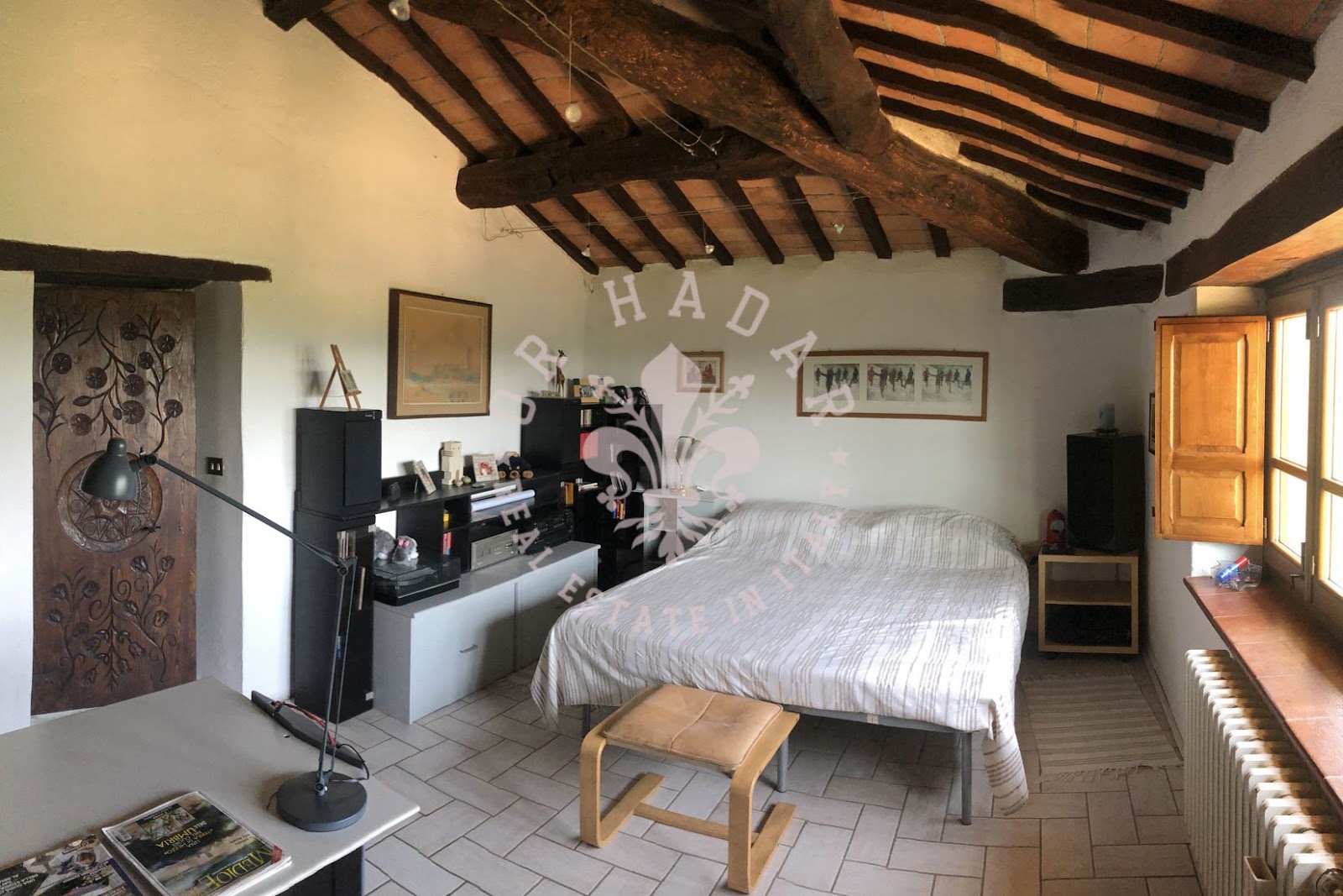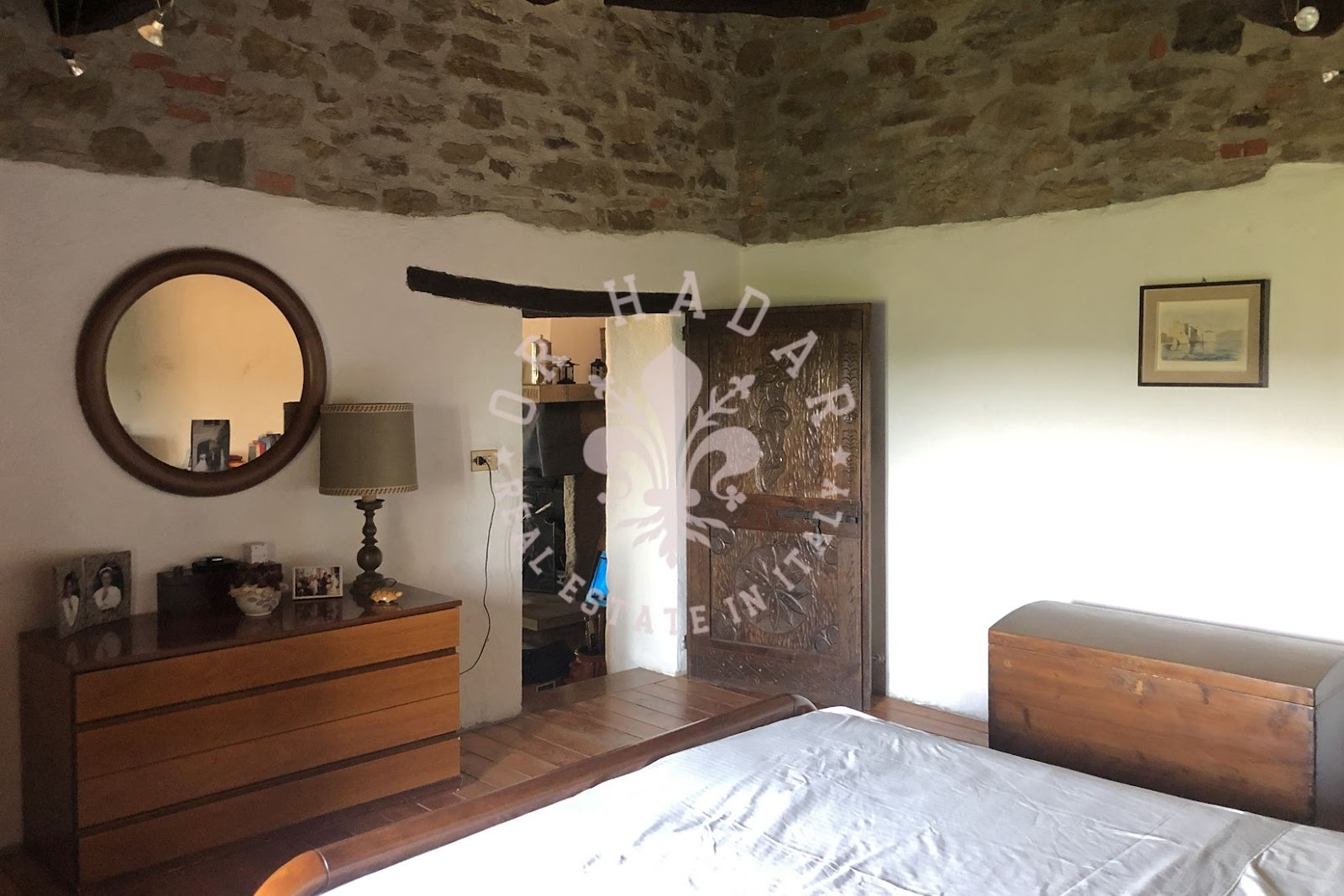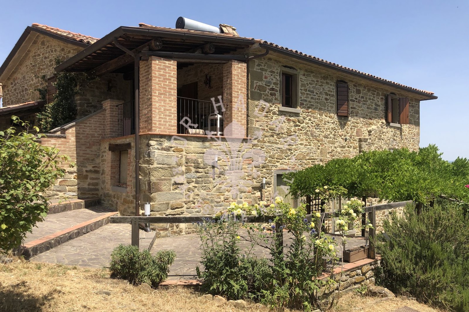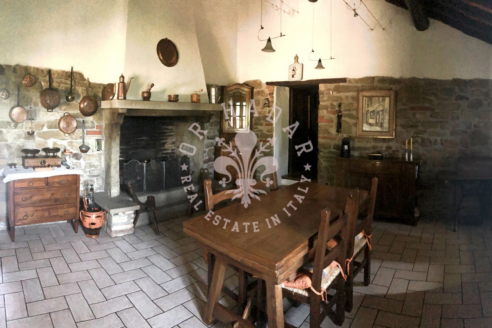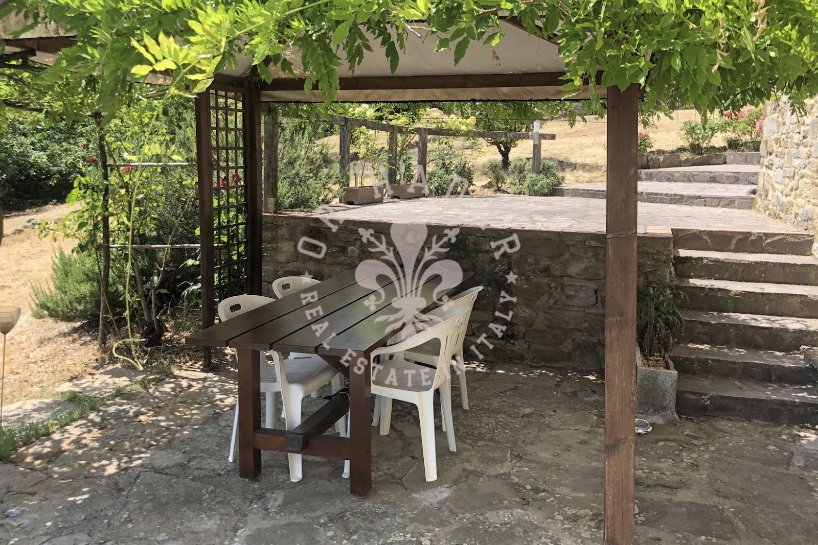 במיקום פנורמי יפהפה עם נוף של 360 מעלות ושמש רבה, אנו מוצאים את החווה האופיינית הזו, הבנויה כולה מאבן. החווה מסודרת בשלוש קומות, בצד אחד בצד המזרחי, שם השמש זורחת, ובשני צדדים בצד המערבי, שם השמש שוקעת (לעבר הגבעה שמאחור). בכניסה לחווה משמאל נמצא תנור לחם מקומר עמוק, שעדיין עובד. הקומה העליונה שופצה לחלוטין בשנת 2004 ושטחה 100 מ"ר. המבנה בצורת צלב, פשוט מאוד, נבנה כפי שבתי חקלאים נבנו פעם; הורחב ככל שהמשפחה גדלה. לקומה הראשונה של הנכס ניגשים דרך הלוגיה החיצונית והיא מורכבת מ: מרפסת כפרית קטנה עם שני כניסות, מהראשונה יש גישה ישירה למטבח-פינת אוכל בה נמצאת אח גדולה, מהשנייה נמצא מסדרון, סלון, חדר שינה ראשי, חדר שינה וחדר אמבטיה. הקומה התחתונה היא כ-120-130 מ"ר במספר מפלסים, ששימשה בעבר כאורווה ומחסן, שופצה חלקית אך יש להשלים אותה, והיא מורכבת מסלון גדול עם אח ושתי גישות לגן, אחת לצפון ואחת לדרום, שני חדרים, חדר דוד וחדרים נוספים. בצד הצפוני, צמוד לחווה, יש בניין צמוד בן שתי קומות שאליו ניתן להגיע גם מאחד משני החדרים בקומה התחתונה. הצד המזרחי של החווה, כפי שצוין, הוא בשלוש קומות, שם נמצאים כיום מרתפים ומחסן לכלים ומכונות. הנכס מורכב מכ-27 דונם של קרקע הכוללים קרקע חקלאית, חורשות, מטעי ערמונים ומטעי זיתים. בתוך הגדר יש מבנה חקלאי המשמש כמוסך. ליד הגדר יש הריסות בניין עם מבני עזר בשטח של 250 מ"ר. מצפון לדרום, הקרקע בעלת שיפוע העוקב אחר התצורה הגבעית של המקום.