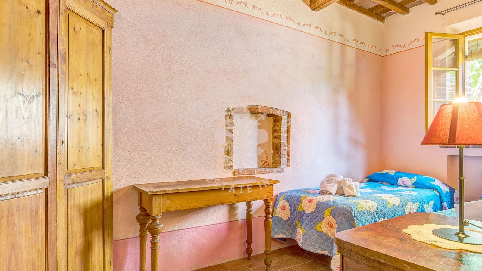 נכס אלגנטי זה ממוקם בירוק השופע של ואלדיצ'יאנה (Valdichiana), במיקום שליו המחובר גם באופן אסטרטגי לערים הגדולות של טוסקנה (Tuscany). אחוזת החווה משתרעת על שטח של כ-4 דונם וכוללת בית חווה מפואר מהמאה ה-19 ושני בתי הארחה מקסימים מאבן.