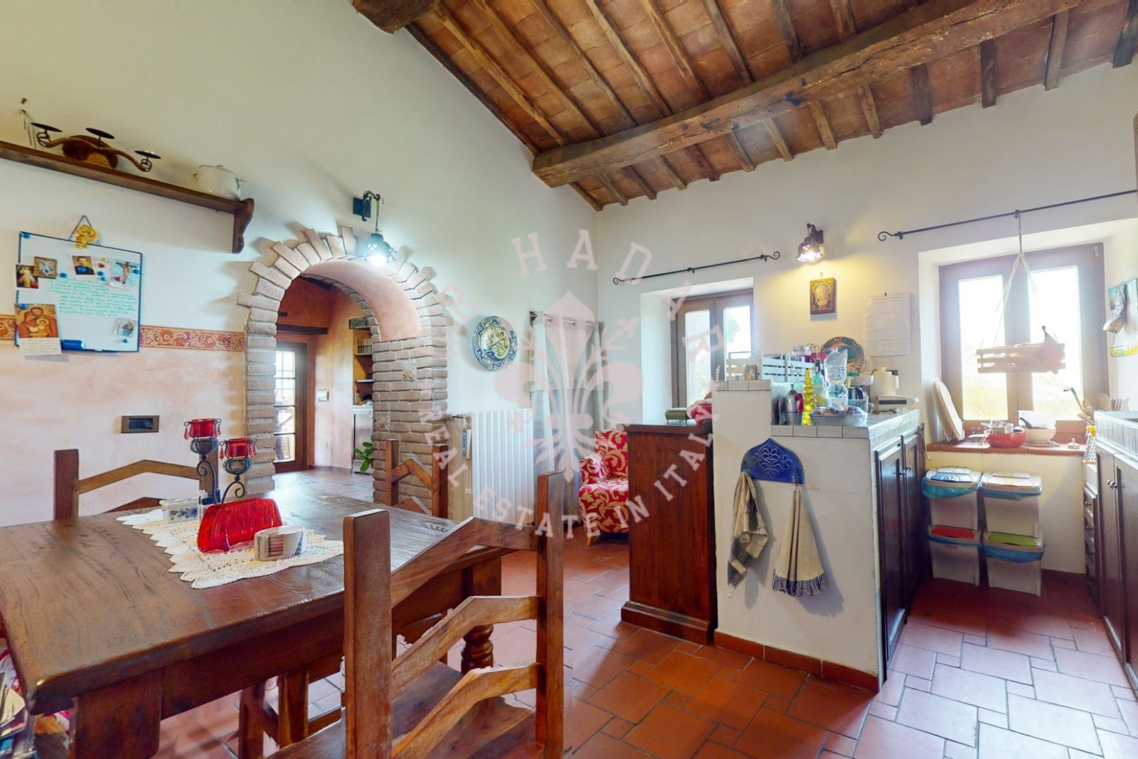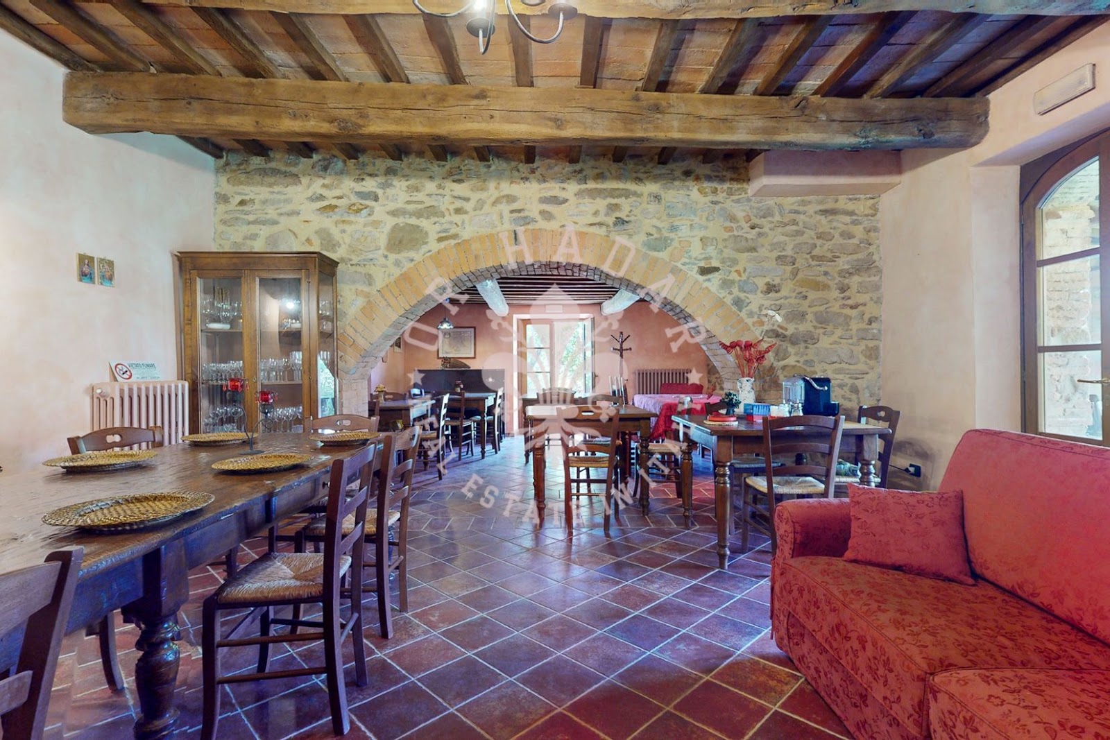 הקומה התחתונה מציעה שטחי מגורים נדיבים ששימשו בעבר כאגריטוריסמו, כולל אזור קבלה, שירותים, סלון משולש/מסעדה, מטבח תעשייתי, שירותים, חדר כביסה ומרפסת חיצונית. הקומה הראשונה מארחת מגורים פרטיים בשטח של 175 מ"ר עם 2 סלונים כל אחד עם אח, 2 פינות אוכל/מטבח, 3 חדרי שינה, אחד עם עליית גג הניתנת למגורים, 3 חדרי אמבטיה, כמו גם חדרי אחסון בקומה העליונה.