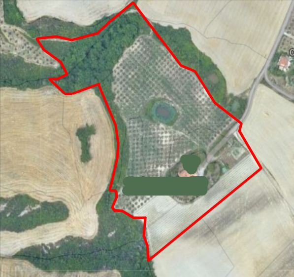 הנכס מוקף בשטח של כ-4.8 דונם, מתוכם 3800 מ"ר מורכבים מהגינה המטופחת, המעוטרת בצמחים ובערוגות פרחים, והחלק הנותר מחולק בין כרם בשטח של 0.5 דונם ומטעי זיתים עם 620 עצים.