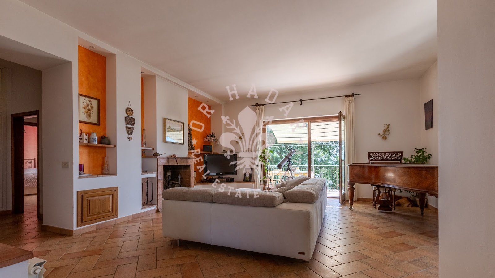 מנקודת מבט ארכיטקטונית, הבניין מציע שטח מסחרי של 341.05 מ"ר, המשתרע על פני שתי קומות עם סך של 12 חדרים. הכניסה היא בקומת הקרקע, ישירות לחללים בהירים ופונקציונליים. בקומת הקרקע יש סלון גדול המאופיין באח ודלתות צרפתיות גדולות המשקיפות על הגינה, המבטיחות המשכיות נעימה בין אזורים פנימיים וחיצוניים. בקומה העליונה יש מרפסת מגורים עם נוף פנורמי של גבעות אומבריה (Umbria) העדינות הסובבות, אלמנט המשפר את איכות החיים בתוך הנכס.