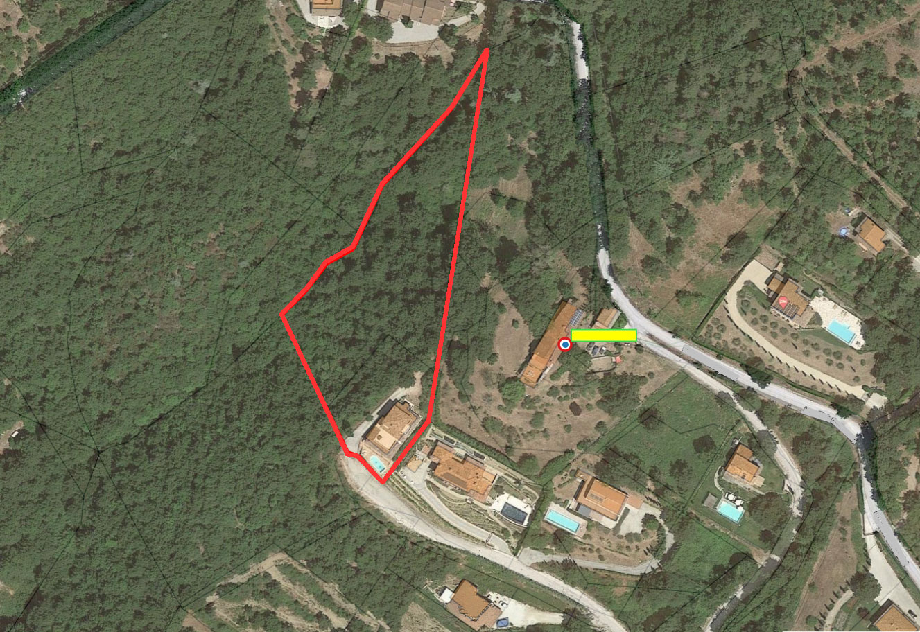 מבחוץ, הנכס מוקף בשטח של כ-6,580 מ"ר, מתוכם 1,640 מ"ר משמשים כגינה, בעוד 4,940 מ"ר הנותרים משמשים כחורש.